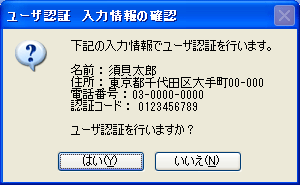 入力情報の確認ウィンドウが表示されますので、内容をご確認の上、「はい(Y)」のボタンを選択してください。